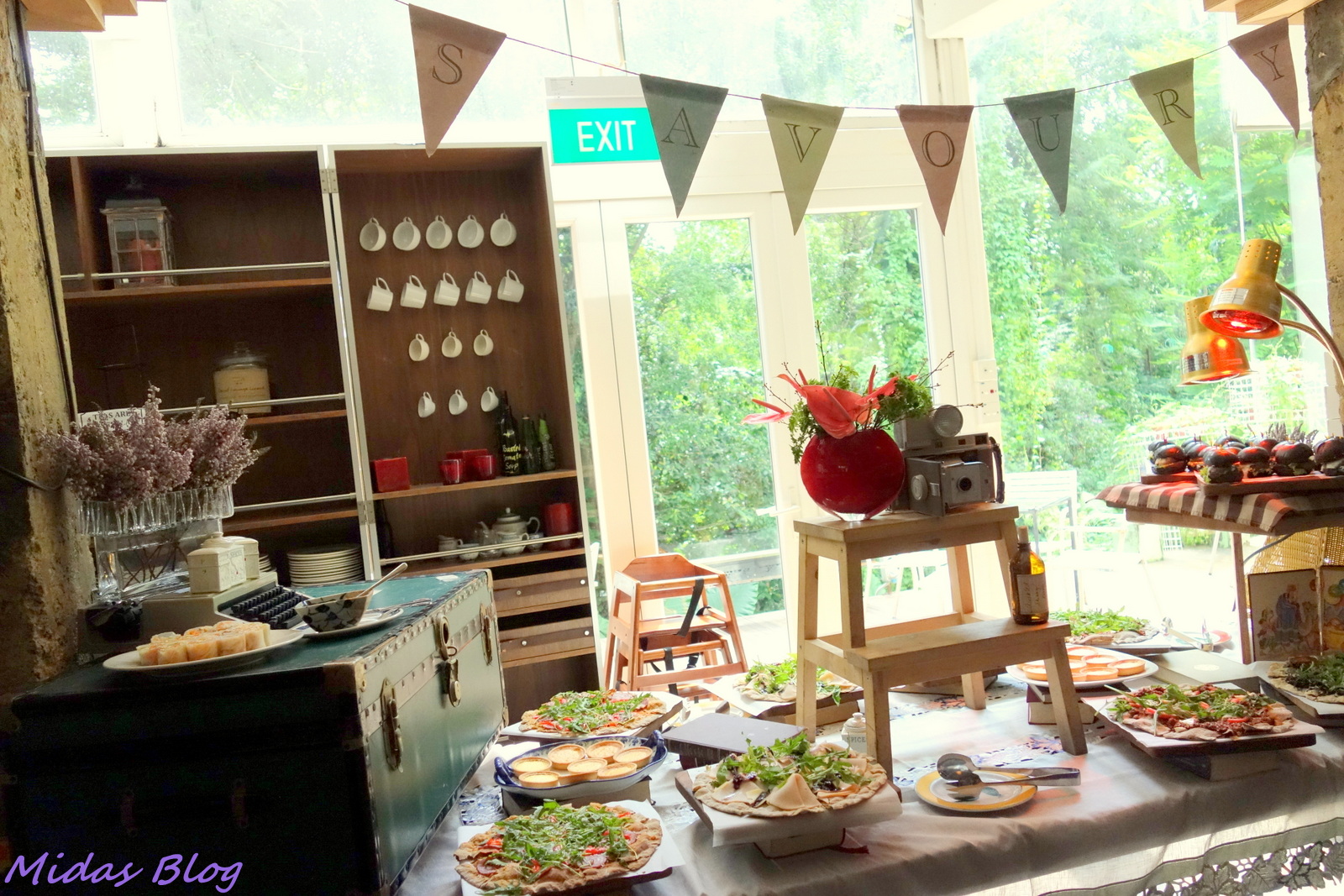 The fabulous setup really blew me away. The decor is every bit whimsical, with old school hardcover books, antique suitcases, retro typewriter & mechanical camera scattered across the buffet spread. Dainty floral plates and countryside crockery matches perfectly with the English garden theme floral arrangement. We've been instantly teleported to the fairyland!