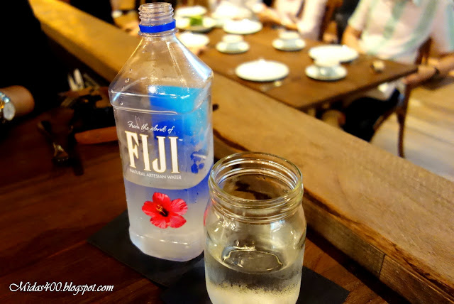 While dinner was being prepared in the kitchen, the friendly host served us premium bottled water and Amuse-Bouche (fresh oysters topped with seasoned chopped apples). These were fabulous.