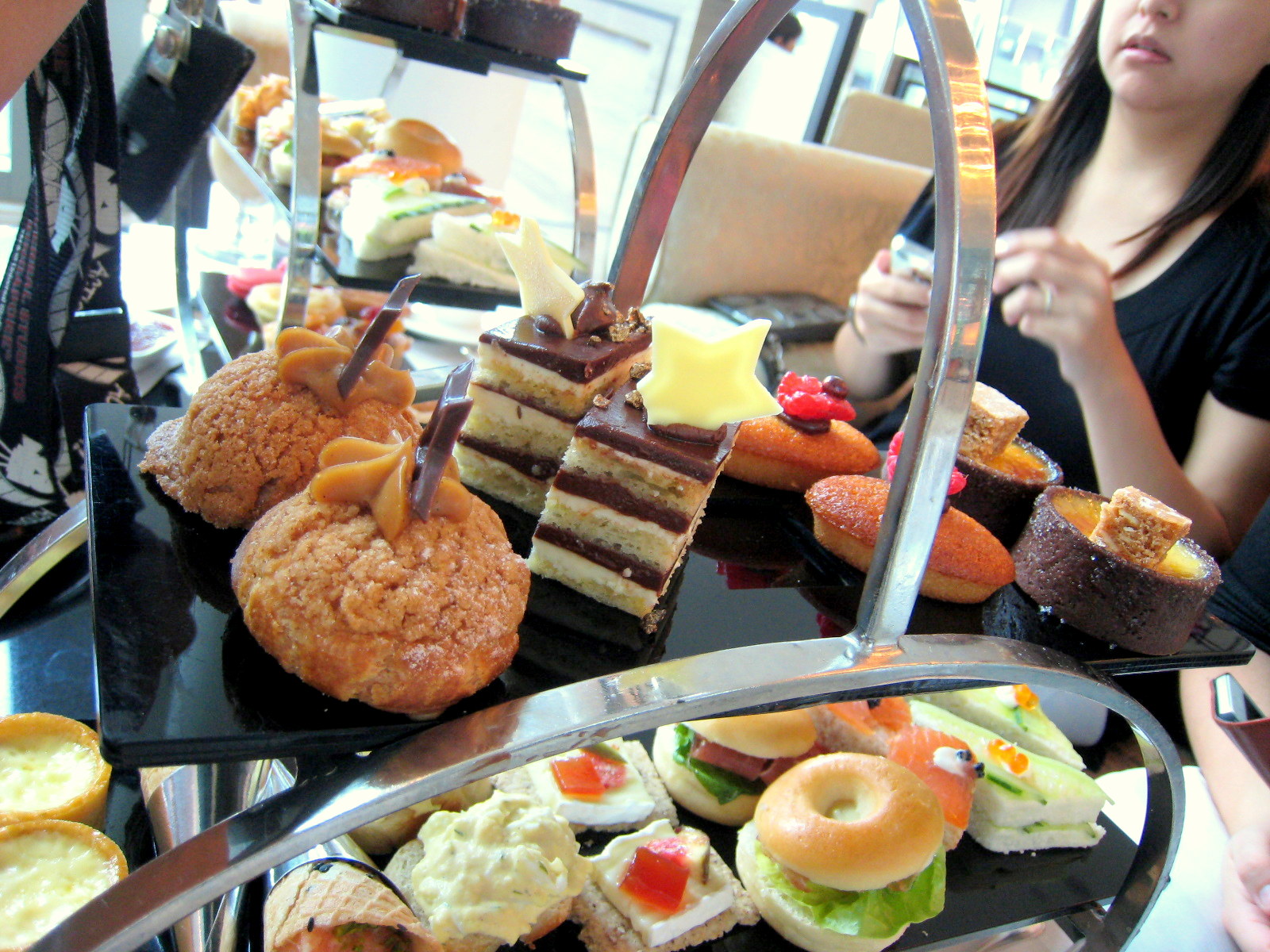 The savories are more popular with the girls, we had multiple servings of turkey wrap, salmon sandwich, egg mayo toast, onion quiche and the cheesy biscuits..the salmon cone is quite good but they didn't replenish often and we had to ask for it, so was the yummy creme brulee tart..
